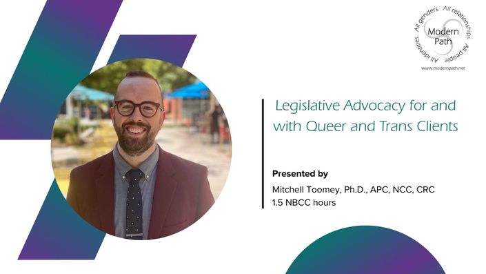 Modern Path has been approved by NBCC as an Approved Continuing Education Provider, ACEP No. 7152 for LIVE PROGRAM FORMAT ONLY. Programs that do not qualify for NBCC credit are clearly identified. Modern Path is solely responsible for all aspects of the programs. Modern Path is NOT approved for home study or asynchronous programs at this time.